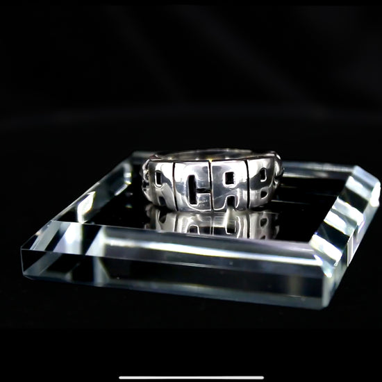 Preciosa sortija con ACAB en la parte superior con brillo espejo y un brazo rocoso envolviendo las letras.