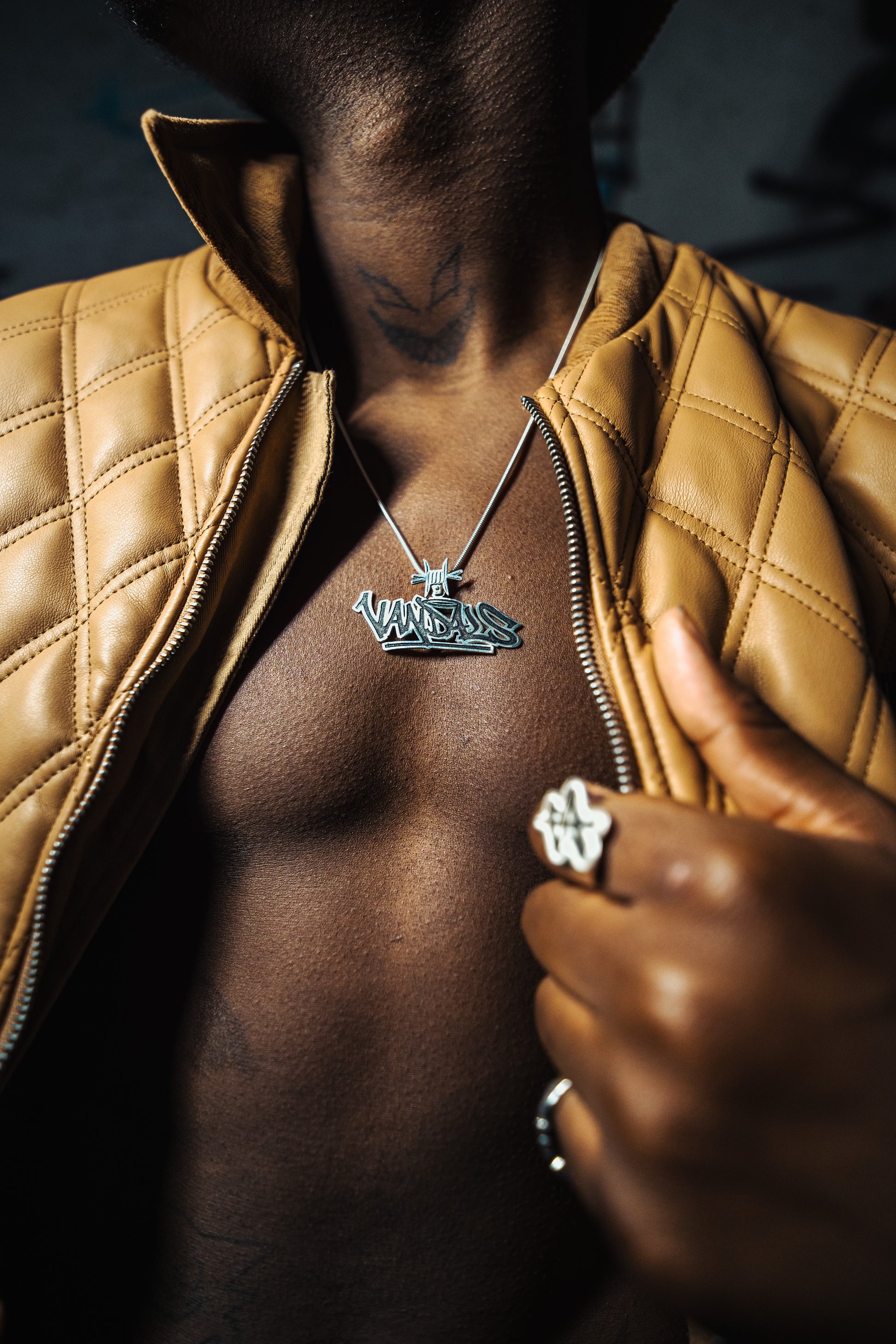Colgante Vandals con una tipografía de takeo cuadrado.